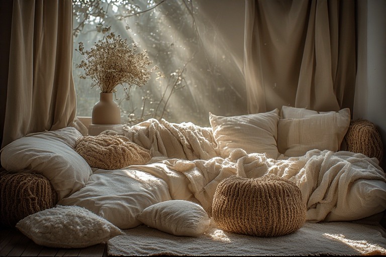 Seiring waktu, sudut kamar dengan selimut dekoratif dan cahaya string light kecil menjadi tempat favorit yang dinantikan. Suasana hati lebih rileks karena ada sentuhan kecil yang penuh kelembutan, dan kamar tidur terasa seperti tempat pelarian pribadi yang selalu hangat. Cobalah malam ini: tata selimut lembut di sudut kamar, tambahkan bantal kecil, nyalakan string light kuning hangat, dan duduk santai di sana. Rasakan sendiri bagaimana detail kecil ini membawa kenyamanan ekstra dan mood yang lebih lembut ke hari Anda. Ini adalah cara indah untuk menambahkan zatishku ke kamar melalui tekstil lembut dan cahaya hangat yang penuh kelembutan.
